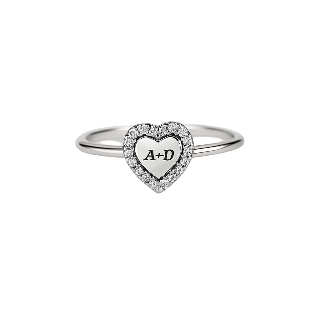 Delicate yet full of sentiment, the Engraved Heart Ring features a central heart framed by fine, sparkling stones. It’s elegant, subtle, and made to hold meaning—whether you engrave it with two initials or leave it beautifully blank. Available in silver and gold finishes, it's a timeless piece for everyday wear.