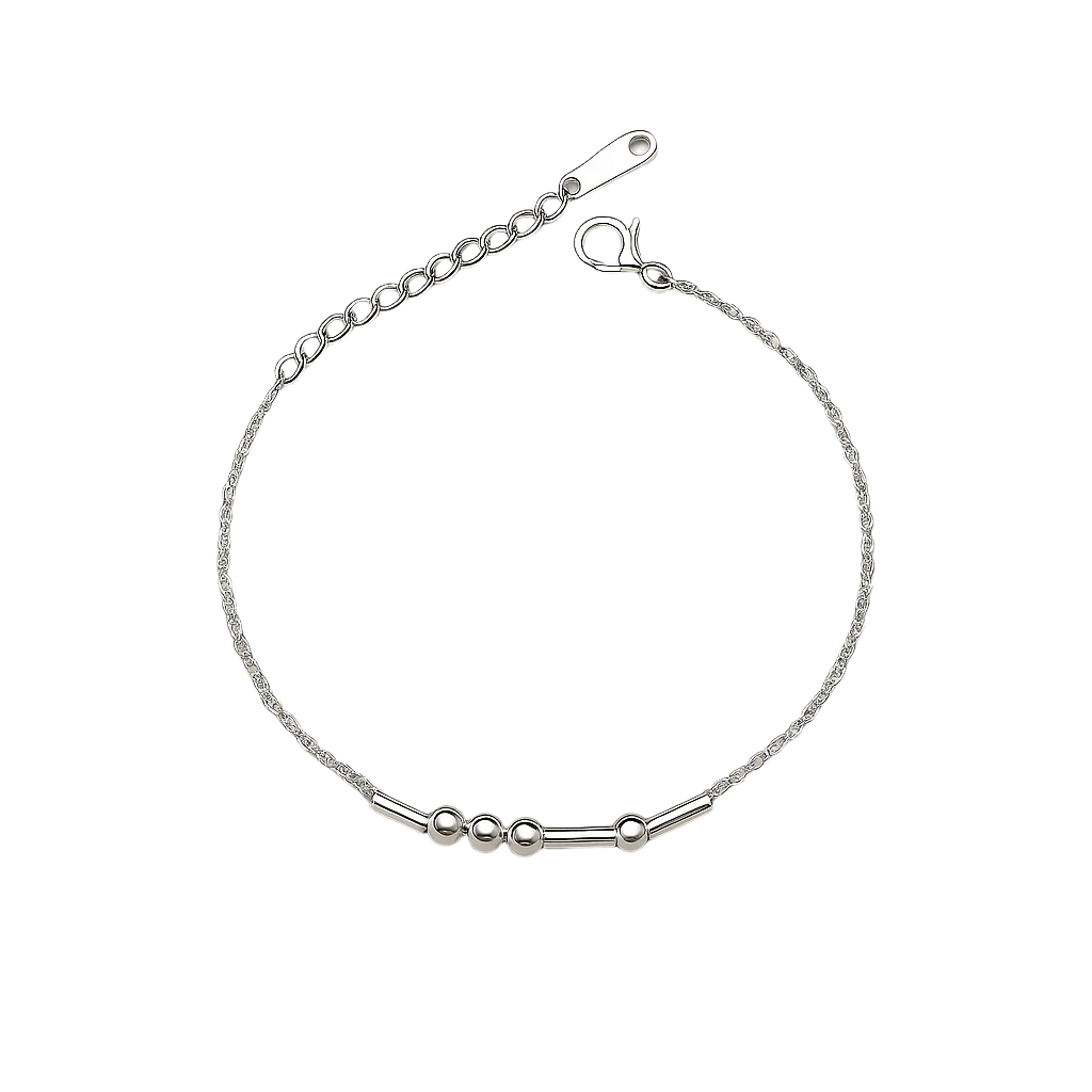 This bracelet is more than just a beautiful accessory — it's a secret message in plain sight. We use dot and dash-shaped pendants to represent each letter of your chosen name, word, or initials in Morse code. The result is a subtle, personalised piece of jewellery that only you (and those you choose) will understand. Whether it's your name, a loved one’s, or a meaningful word, we’ll translate it into a special, discreet code just for you. Simply enter your desired text above, and we’ll take care of the rest — crafting your hidden message in a truly unique way.