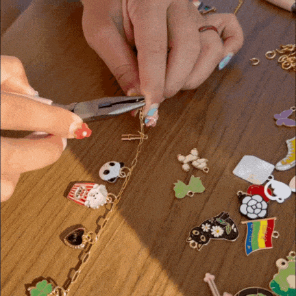 Simply unbox your kit to find 2 bracelets, 1 necklace, 100 random charms, over 100 links, and 2 jewellery pliers. Use the tools to attach charms and create your own unique designs—then easily remove and replace charms anytime to refresh your look!