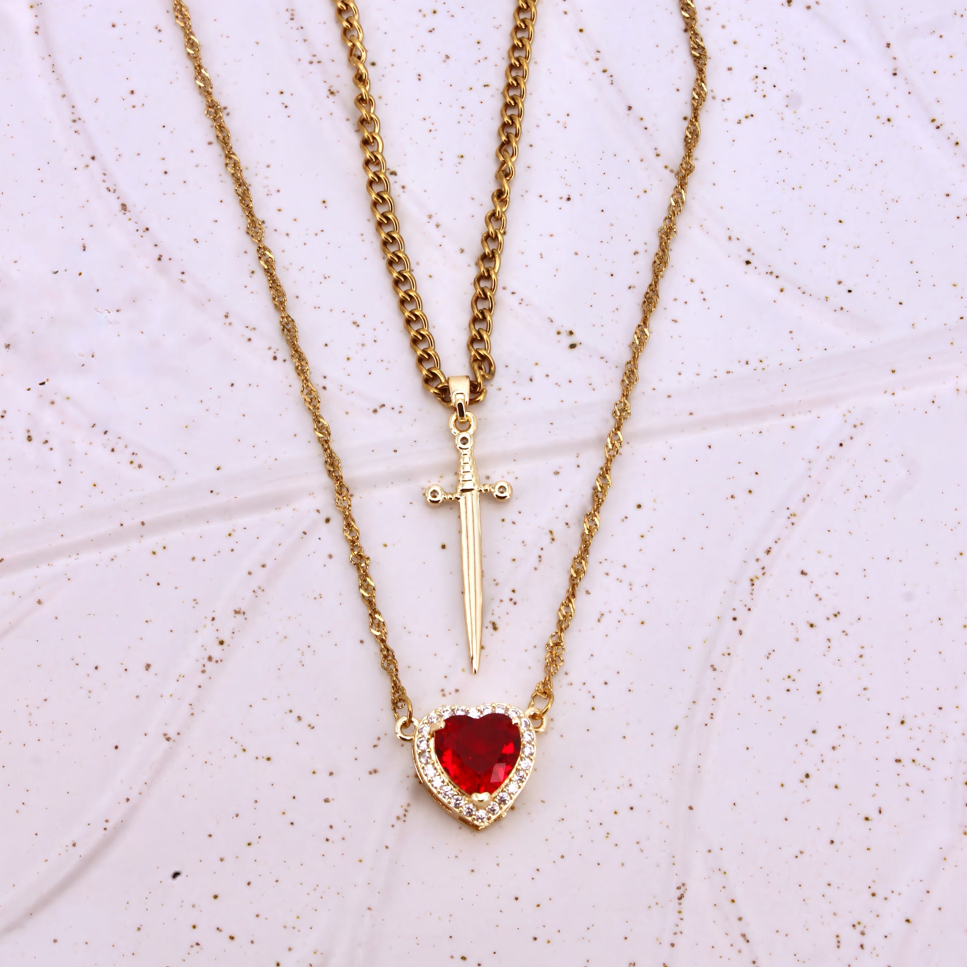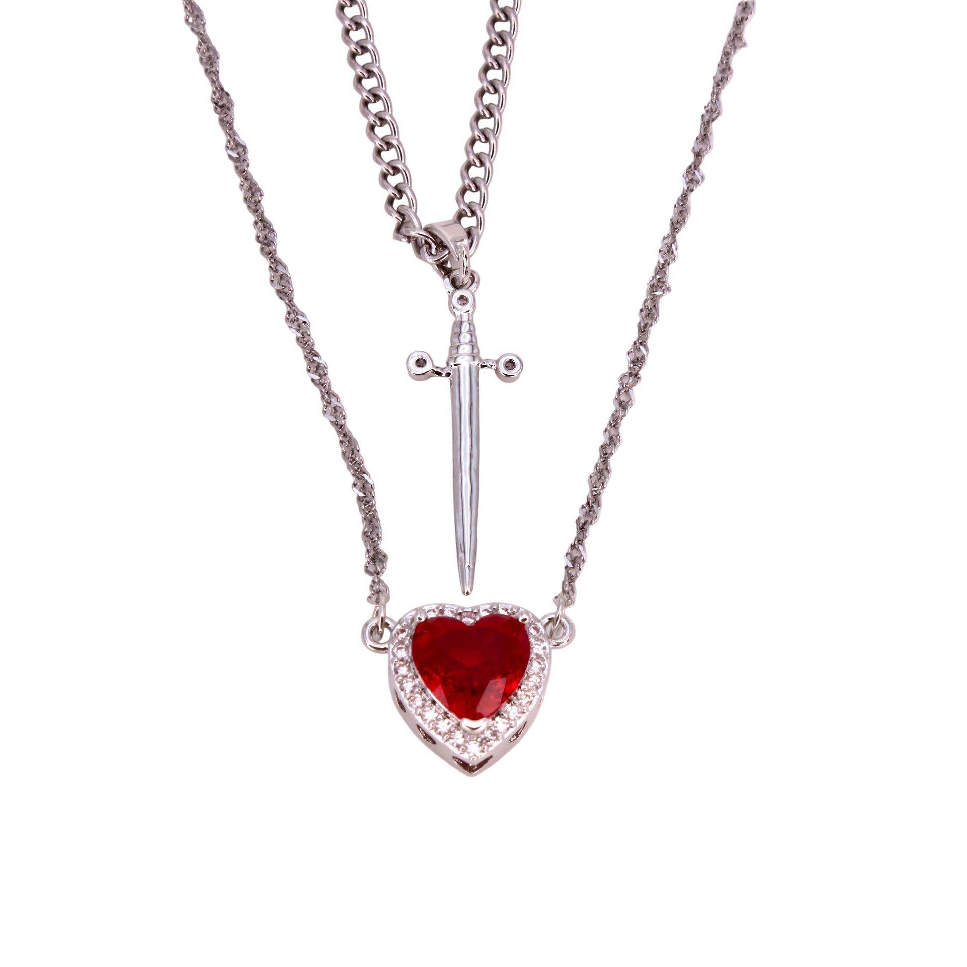 Dazzling and heartfelt, this red heart and sword necklace exudes elegance and meaning. Beautifully designed for couples, it’s a luxurious gift choice.